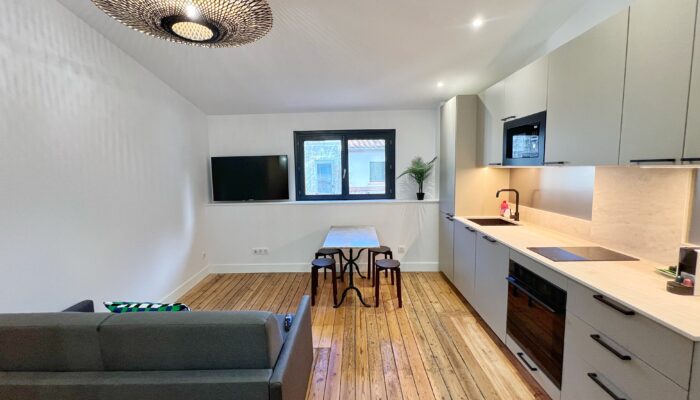 L’appartement se situe au RDC d’un petit immeuble et vous offre un accès immédiat aux commerces, transports et centre ville.
